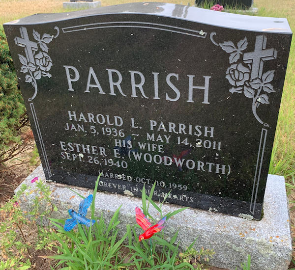 Birth Born on September 26, 1940 Marriages PARRISH, Harold Laverne Married on October 10, 1959 Children PARRISH, Susan PARRISH, Stephen PARRISH, David PARRISH, Michael Images Harold L. & Esther (Woodworth) Parrish
