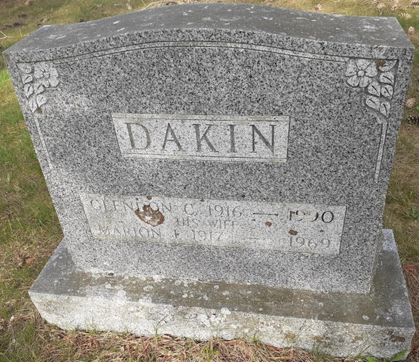 Birth Born on August 07, 1916 in Centreville, Kings Co., NS Death Died on 1990 in Kentville, Kings Co., NS Buried in Berwick Cemetery in Berwick, Kings Co., NS Marriages SANFORD, Marion Elizabeth Sources Kings Cemetery Records: Berwick Cemetery Berwick,NS Images William Dakin Birth William Dakin