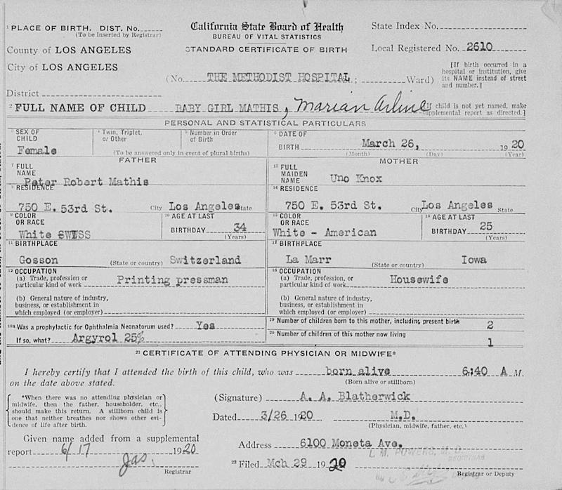 Birth Born on March 26, 1920 in Los Angeles, Los Angeles Co., CA Death Died on January 05, 2010 in Rockport, Aransas Co., TX Buried in Aransas Memorial Park in Rockport, Aransas Co., TX Marriages SHAW, Glenn Herbert Married on 1979 in Orange Co., CA Sources Cemetery: Aransas Memorial Park Rockport, TX Images Marian (Mathis) Bates Birth Marian (Bates) Shaw