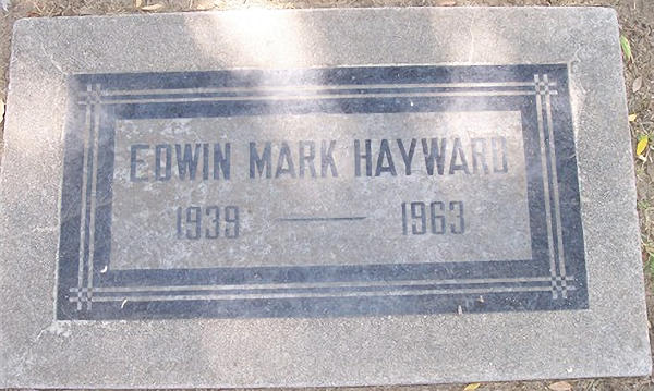 Parents Father: HAYWARD, Albert Wright Mother: SHAW, Vernal Emily Birth Born on November 20, 1939 in Los Angeles, Los Angeles Co., CA Death Died on June 13, 1963 in Los Angeles Co., CA Buried in Mountain View Cemetery in San Bernardino, San Bernardino Co., CA Images Edwin Hayward