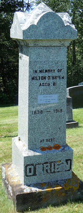 Parents Father: O'BRIEN, Samuel Mother: YUILL, Eleanor Birth Born on March 22, 1838 in Noel, Hants Co., NS Death Died on August 17, 1919 in Noel, Hants Co., NS Buried in Burntcoat Cemetery in Burntcoat, Hants Co., NS Marriages CROWE, Alice M. Married on January 21, 1886 in Truro, Colchester Co., NS Children O'BRIEN, Cassie Mildred: April 27, 1895 - 1984 Notes Occupation: Farmer/ Ship Builder Death: Old Age Sources Nova Scotia Deaths: Book 35 Pg. 627 #735 Images William O'Brien William O'Brien Death William O'Brien Marriage