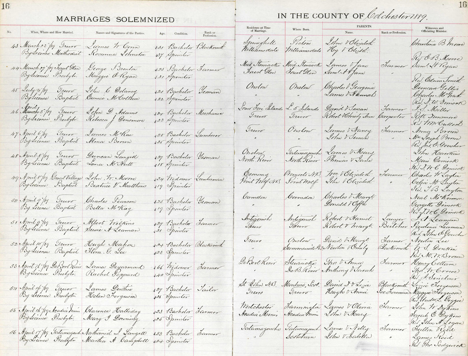 Parents Father: LANGILLE, James L. Mother: LANGILLE, Ellen Birth Born on May 13, 1865 in Tatamagouche, Colchester Co., NS Death Died on February 08, 1961 in Rainier, Columbia Co., OR Buried in Woodbine Cemetery in Rainier, Columbia Co., OR Marriages CAMPBELL, Martha Anne Married on April 17, 1889 in Tatamagouche, Colchester Co., NS Children LANGILLE, John James: March 02, 1890 - July 05, 1971 LANGILLE, Victor Scott: November 25, 1891 - May 16, 1965 LANGILLE, Annie Isabell: September 28, 1895 - September 29, 1992 LANGILLE, Adam Campbell: January 29, 1898 - June 16, 1988 LANGILLE, Lawson Gordon: 1901 - August 16, 1919 Notes Occupation: Farmer Sources Oregon Deaths: #1406 Images Nathaniel Langille Nathaniel Langille Marriage Nathaniel Langille Obit