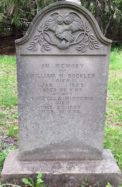 Parents Father: McBURNIE, Robert Mother: MATTATALL, Mary Catherine Birth Born on 1790 Death Died on July 02, 1880 Buried in McBurnie Burial Ground in Barrachois, Colchester Co., NS Marriages BUCKLER, William H. Children BUCKLER, Samuel: October 16, 1832 - May 17, 1900 Sources Colchester Cemeteries: Barrachois McBurnie Burial Ground #3 Images William & Grizzella (McBurnie) Buckler