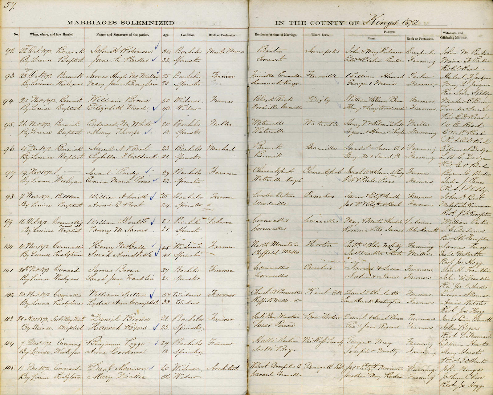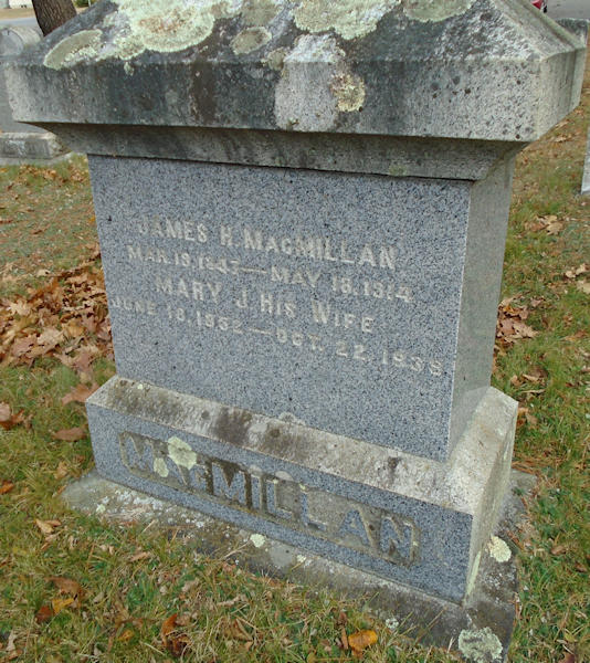 Birth Born on March 19, 1847 in Fairville, Kings Co., NS Death Died on May 18, 1914 in Aylesford, Kings Co., NS Buried in Aylesford United Cemetery in Aylesford, Kings Co., NS Marriages BROUGHAM, Mary Jane Married on October 23, 1872 in Berwick, Kings Co., NS Children McMILLAN, Mary Ann: April 29, 1876 - October 23, 1970 Notes Occupation: Farmer Death: Heart Disease/ Apoplexy Sources Nova Scotia Deaths: Book 40 Pg. 49 #181 Images James & Mary (Brougham) MacMillan James MacMillan Death James MacMillan Marriage