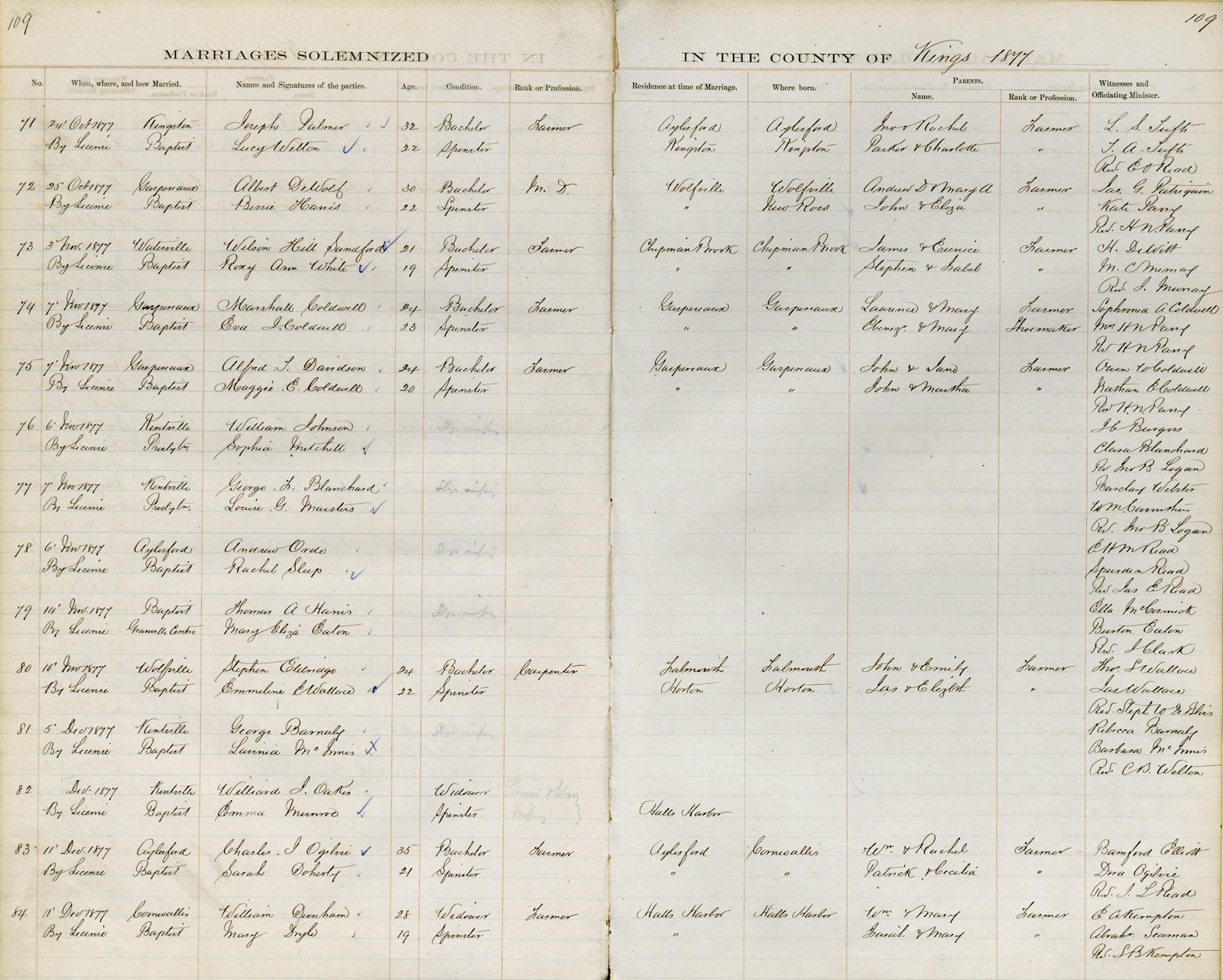 Birth Born on September 25, 1848 in Kings Co., NS Death Died on March 19, 1923 in Berwick, Kings Co., NS Buried in Aylesford, Kings Co., NS Marriages DOHERTY, Sarah Jane Married on December 11, 1877 in Aylesford, Kings Co., NS Children OGILVIE, Charles Spurgeon: May 16, 1892 - August 14, 1977 Notes Occupation: Farmer Death: Ulceration of Stomach Sources Nova Scotia Deaths: Book 93 Pg. 500 Images Charles I. Ogilvie Death Charles I. Ogilvie Marriage