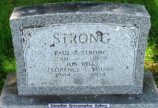 Parents Father: STRONG, Adelbert Havelock Mother: PARRISH, Effie Elizabeth Birth Born on December 07, 1900 in South Waterville, Kings Co., NS Death Died on 1979 in Kings Co., NS Buried in Cambridge United Baptist Cemetery in Cambridge Station, Kings Co., NS Marriages YOUNG, Florence Etta Married on May 23, 1928 in Bridgetown, Annapolis Co., NS Notes Occupation: Farmer Sources Kings Cemetery Records: Cambridge United Baptist Cemetery Cambridge Station,NS Images Paul & Florence (Young) Strong Paul Strong Marriage