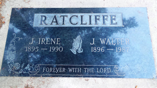 Parents Father: RATCLIFFE, Joseph Fowler Mother: PHILLIPS, Elizabeth Frances Birth Born on September 28, 1896 in Saint John, Saint John Co., NB Death Died on July 30, 1987 in Red Deer, Red Deer Co., AB Buried in Alto Reste Cemetery in Red Deer, Red Deer Co., AB Marriages CHARLTON, J. Irene Sources Cemetery: Alto Reste Cemetery Red Deer,AB Devotion D-65 Findagrave.com: http://www.findagrave.com/cgi-bin/fg.cgi?page=gr&GRid=131991608 Images Joseph W. Ratcliffe Birth Joseph W. & J. Irene (Charlton) Ratcliffe
