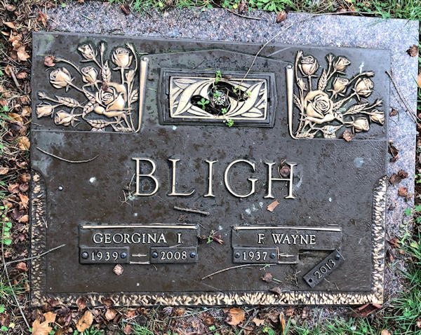 Parents Father: BLIGH, Charles Frederick Mother: RITCHIE, Mary Gertrude Birth Born on January 08, 1937 in Gerald, Melville Census Division, SK Death Died on August 06, 2013 in Victoria, Capital Region, BC Buried in Hatley Memorial Gardens in Colwood, Capital Region, BC Marriages , Andrea JAMES, Thyra May WILLIAMS, Georgina Irene Children BLIGH, Sherri Neanette BLIGH, Russel BLIGH, Mona Jeanette BLIGH, Gordon Charles Sources My Heritage: https://www.myheritage.com/profile-OYYV7ASUQG3LCT6POOOIQXIUELBKLDY-2000013/frederick-wayne-bligh# Images Frederick & Georgina (Williams) Bligh