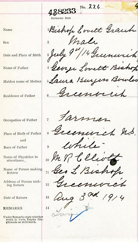 Parents Father: BISHOP, George Lovett Watson Mother: BOWLES, Laura Burgess Birth Born on July 09, 1914 in Greenwich, Kings Co., NS Death Died on March 21, 2003 in Wolfville, Kings Co., NS Marriages JODREY, Florence May Married on August 12, 1937 in Hantsport, Hants Co., NS Children BISHOP, Marianne Jean: 1946 - September 07, 1982 Notes Occupation: Warehouse Manager Sources My Heritage: https://www.myheritage.com/profile-OYYV7I2MMQJB3NBVI2I5S7CSPBFLVSI-1500015/lovett-grant-bishop# Images Lovett & Lorna Bishop Birth Lovett Bishop Marriage