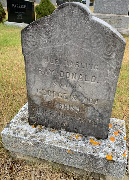 Parents Father: PARRISH, George Mother: BEST, Ada Beatrice Birth Born on August 03, 1906 in Rockland, Kings Co., NS Death Died on November 18, 1911 in Kings Co., NS Buried in Berwick Cemetery in Berwick, Kings Co., NS Sources Kings Cemetery Records: Berwick Cemetery Berwick,NS Images Ray Parrish