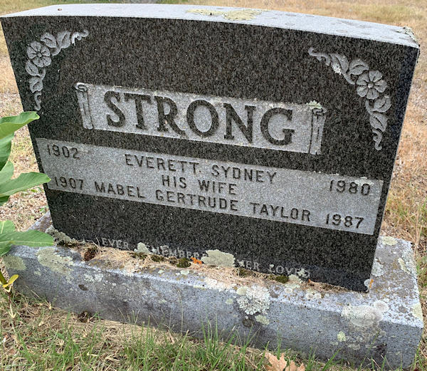 Parents Father: STRONG, Adelbert Havelock Mother: PARRISH, Effie Elizabeth Birth Born on 1903 in South Waterville, Kings Co., NS Death Died on 1980 in Berwick, Kings Co., NS Buried in Berwick Cemetery in Berwick, Kings Co., NS Marriages TAYLOR, Mabel Gertrude Married on June 03, 1926 in Berwick, Kings Co., NS Children STRONG, Myrtle: 1927 Sources Kings Cemetery Records: Berwick Cemetery Berwick,NS Images Everett & Mabel (Taylor) Strong Everett Strong Marriage