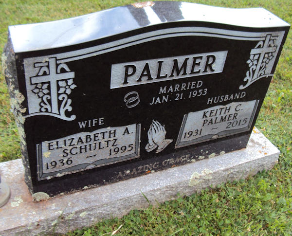 Parents Father: PALMER, Miles Simpson Mother: CALKIN, Frances Elroy Birth Born on 1931 in Somerset, Kings Co., NS Death Died on October 10, 2015 in Bridgetown, Annapolis Co., NS Buried in Lakeview Cemetery in Lakeville, Kings Co., NS Marriages SHULTZ, Elizabeth Ann Married on January 21, 1953 PINEO, Velma Merle (Sheffield) Children PALMER, Kathryn PALMER, Sandra PALMER, Michelle PALMER, Bryan PALMER, Kevin PALMER, Sharon Elizabeth: 1956 - February 08, 2019 PALMER, Steven Miles: August 21, 1960 - September 24, 1960 PALMER, Valerie Miriam: July 20, 1961 - May 05, 1962 Notes Occupation: Employee at A.V. Roe Co./ Auto Body Repair Obituary: Keith Calkin Palmer - 84, of Billtown, Kings County, entered into the gates of God's kingdom on Saturday, October 10, 2015 while a resident of Mountain Lea Lodge, Bridgetown. Born in Somerset, Kings County, he was a son of the late Miles and Frances (Calkin) Palmer. In his earlier years, while working in Ontario, Keith was very proud to have participated in the Avro Arrow project. Later, Keith worked for many years in the auto body repair industry, starting with Austins and then with Volvos and Toyotas. He was a proud member of the Billtown Baptist Church and was known as a hardworking, kind and patient man. He is survived by his wife, Velma (Sheffield); four daughters, Kathryn (Ross) Palmer, New Minas; Sandra Wheaton, Quispamsis, New Brunswick; Sharon Palmer, Centreville; Michelle (Hal) Thurber, Halifax; two sons, Bryan (Nancy Woodworth) Palmer, Rockland; Kevin Palmer, Hamilton, Ontario; a sister, Miriam Ward, Kentville; 14 grandchildren, Kimberly, Terri, Andrew, Melody, Heidi, Marcy, Emily, Cory, Beth, Kelly, Megan, Halee, Mason and Kyle; numerous great grandchildren; several nieces and nephews. He was predeceased by his first wife, Elizabeth (Schultz); two infant children, Stephen and Valerie; two brothers, Avard and Gerald; a son-in-law, Herman "Skip" Wheaton. Visitation will be held from 6-8 p.m. Monday, October 12, 2015 in the White Family Funeral Home, Kentville. The funeral service, followed by a reception, will be held at 10:00 a.m. Tuesday, October 13, 2015 in the Billtown Baptist Church, Kings County, Reverend Murray Shaw officiating. Burial will take place in the Lakeview Cemetery, Lakeville, Kings County. In lieu of flowers, donations in memory may be made to the Billtown Baptist Church, Mountain Lea Lodge, or the Heart and Stroke Foundation of Nova Scotia. We would like to thank the staff of Mountain Lea Lodge for their excellent care of our Dad. Their kindness and compassion shown to us in the last weeks helped sustain us. Funeral arrangements have been entrusted to the White Family Funeral Home and Cremation Services, Kentville. Sources Funeral Home: White Family Funeral Home Kentville,NS Obituary October 2015 Images Keith & Elizabeth (Shultz) Palmer. Keith Palmer