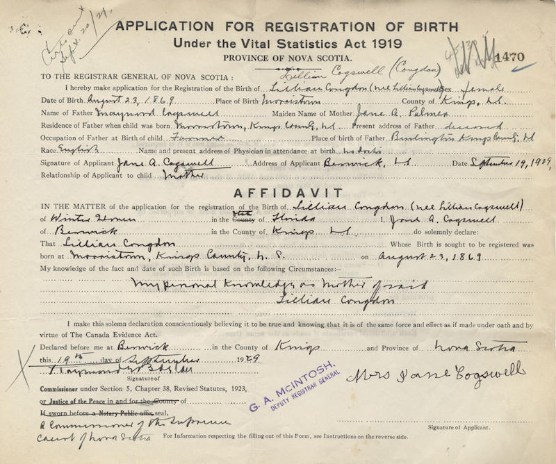 Birth Born on August 23, 1869 in Morristown, Kings Co., NS Death Died on January 05, 1936 in Winter Haven, Polk Co., FL Buried in Oaklawn Cemetery in Winter Haven, Polk Co., FL Marriages CONGDON, Ernest Stan Married on January 06, 1887 in Aylesford, Kings Co., NS Children CONGDON, Frank Roy: October 29, 1888 - January 30, 1960 Sources Florida Deaths: #1736 Images Lillian Cogswell Birth Ernest Congdon Marriage