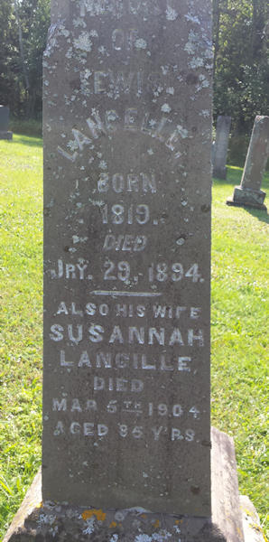 Parents Father: LANGILLE, John Louis Mother: JEANPERRIN, Mary Margaret Birth Born on 1819 in River John, Pictou Co., NS Death Died on January 29, 1894 in River John, Pictou Co., NS Buried in Union Cemetery in Marshville, Pictou Co., NS Marriages LANGILLE, Susannah Children LANGILLE, George Gordon: March 26, 1854 - December 05, 1942 Sources Pictou Cemetery Records: Union Cemetery Marshville,NS Images Louis & Susannah (Langille) Langille