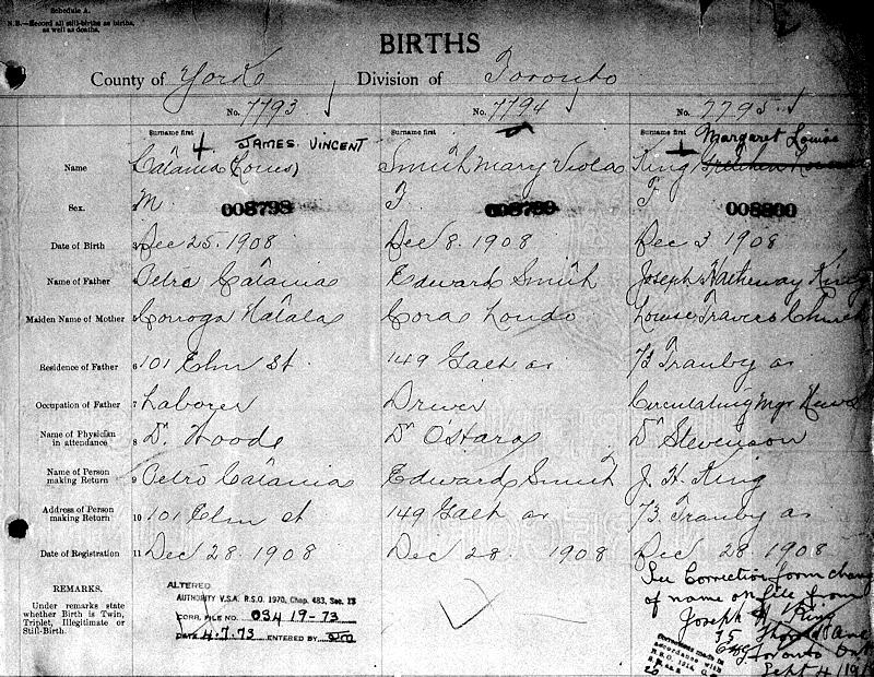 Parents Father: KING, Joseph Hatheway Mother: CHURCH, Louise Travers Birth Born on December 03, 1908 in York, toronto, ON Death Died on 1962 in Toronto, ON Buried in Park Lawn Cemetery in Toronto, ON Marriages CALDER, Unknown Sources Findagrave.com: http://www.findagrave.com/cgi-bin/fg.cgi?page=gr&GRid=113545773 Images Margaret King Birth Joseph & Louise (Church) & Margaret (King) Calder King