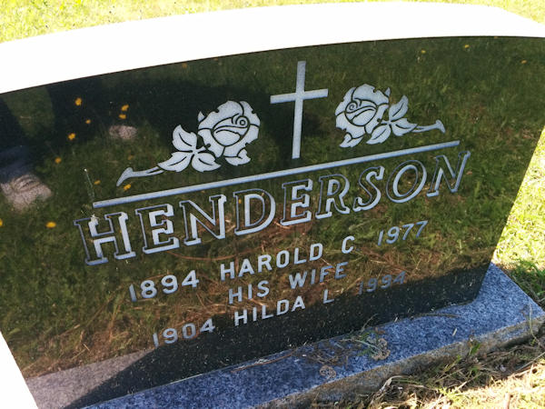 Parents Father: HENDERSON, James Robert Mother: PURVES, Lillian Vincent Birth Born on April 28, 1894 in Nauwidgewauk, Kings Co., NB Death Died on 1977 in Kings Co., NB Buried in Holy Trinity Cemetery in Quispamsis, Kings Co., NB Marriages BRUNDAGE, Hilda Louise Married on September 02, 1939 in Hammond River, Kings Co., NB WILLIAMSON, Agnes Belle Married on October 05, 1921 in Hammond River, Kings Co., NB Children HENDERSON, Girl: October 28, 1923 - 1923 Notes Occupation: Farmer/ Collecting Clerk Sources NB Cemeteries: Holy Trinity Cemetery Quispamsis,NB Images Harold & Hilda (Brundage) Henderson Harold Henderson Marriage Harold Henderson Marriage2