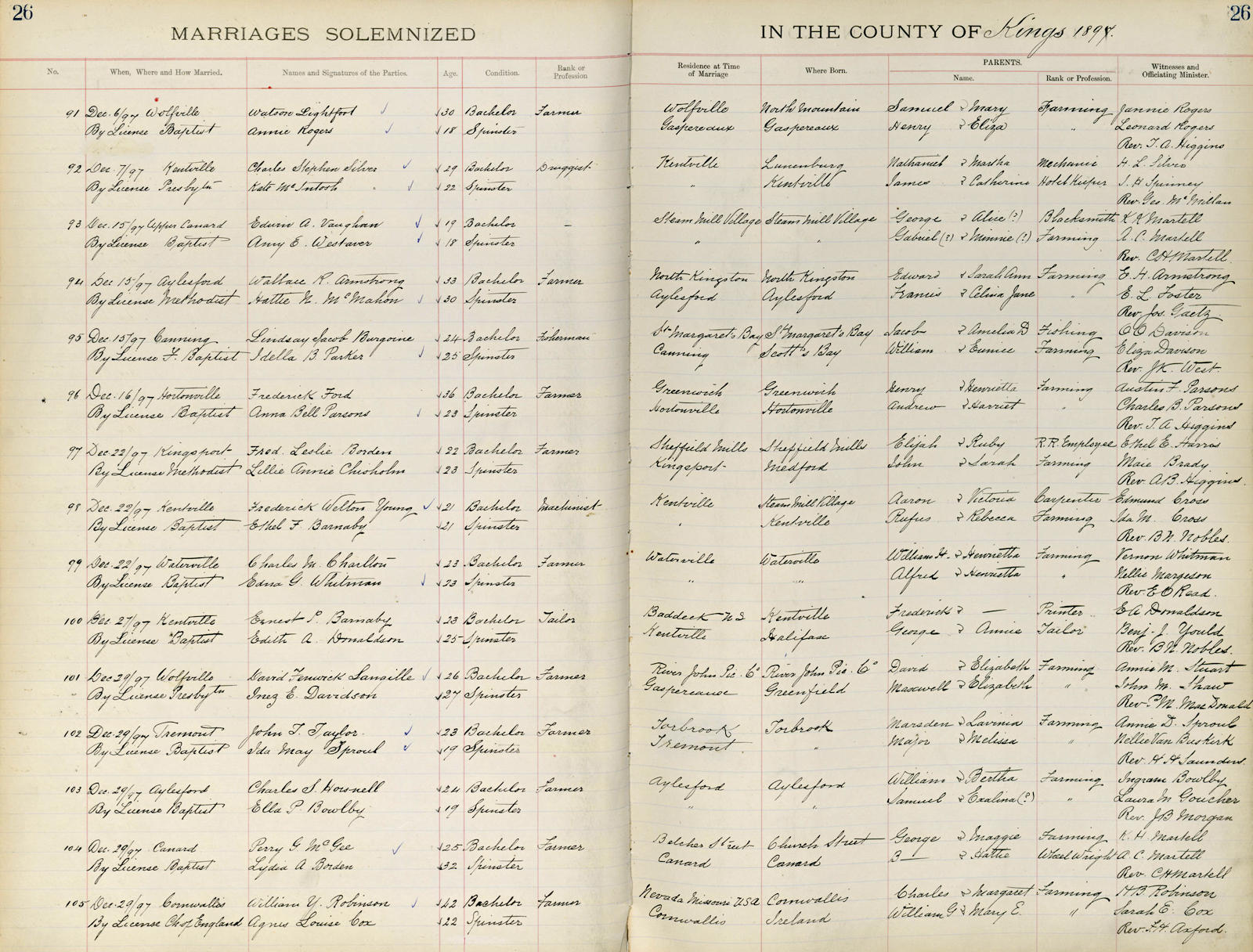Parents Father: BOWLBY, Samuel Mother: PHINNEY, Exalina Fayette Birth Born on August 10, 1878 in Dempsey Corner, Kings Co., NS Death Died on November 21, 1967 in Millville, Kings Co., NS Buried in Aylesford Union Cemetery in Aylesford, Kings Co., NS Marriages HORSNELL, Charles Sans Married on December 29, 1897 in Aylesford, Kings Co., NS Children HORSNELL, Wilfred Freeman: December 13, 1900 - January 07, 1979 HORSNELL, Harry Lewis: October 07, 1905 - December 06, 1978 HORSNELL, Ruth Muriel: November 15, 1913 - October 07, 2000 HORSNELL, Cynthia Pauline: July 19, 1915 - November 06, 1955 Notes Death: Acute Myocardial Infarction Sources Kings Cemetery Records: Aylesford Union Cemetery Nova Scotia Deaths: Year 1967 #7500 Images Ella (Bowlby) Horsnell Death Ella Bowlby Marriage