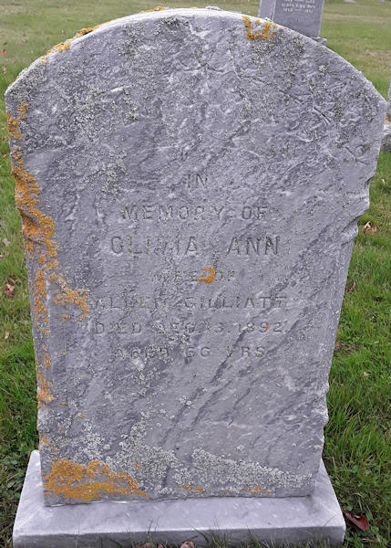 Parents Father: PHINNEY, Isaac Bent Mother: BORDEN, Sarah Birth Born on July 27, 1827 in Granville, Annapolis Co., NS Death Died on December 13, 1892 in Granville, Annapolis Co., NS Buried in All Saints Anglican Graveyard in Granville Centre, Annapolis Co., NS Marriages GILLIATT, William Allan Married on October 14, 1847 in Wilmot, Annapolis Co., NS Children GILLIATT, Edward Perry: September 20, 1848 - May 26, 1935 GILLIATT, William Allan: March 14, 1854 - December 17, 1942 GILLIATT, Hibbert Binney: 1861 - March 03, 1864 GILLIATT, Ida Borden: 1869 - November 01, 1871 Sources Annapolis Cemetery Records: Granville Centre All Saints Anglican Graveyard #82A Images Mary,Maria,Perry,Olivia,David,Edward,Asa Phinney Birth Olivia (Phinney) Gilliatt