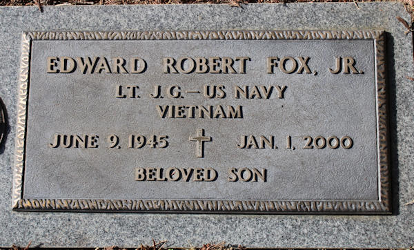 Birth Born on June 09, 1945 in Hayesville, Marion Co., OR Death Died on January 01, 2000 Buried in Hughson, Stanislaus Co., CA Marriages MELHAFF, Lorna Ann Married on 1977 in San Joaquin Co., CA Notes Military Service: Vietnam US Navy Lieutenant JG Sources Findagrave.com: https://www.findagrave.com/memorial/221914465/edward-robert-fox Images Edward Fox