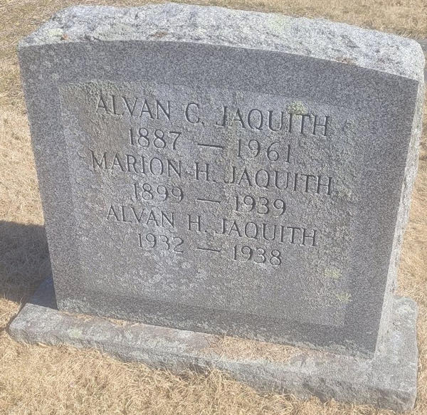 Birth Born on April 17, 1887 in Jaffrey, Cheshire Co., NH Death Died on May 01, 1961 in Massachusetts, USA Buried in Wildwood Cemetery in Wilmington, Middlesex Co., MA Marriages MACKINLEY, Bertha Christine Notes Occupation: Retail Salesman/ Superintendant Groceries/ Owner Dry Goods Store Military Service: WW1 US Army Sources Findagrave.com: https://www.findagrave.com/memorial/84114192/alvan_chase-jaquith Images Alvan Jaquith Birth Alvan Jaquith Alvan Jacquith W1 Draft Alvan Jaquith WW2 Draft Alvan Jaquith Military Service