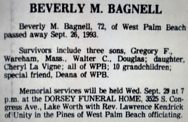 Parents Father: ROGERS, James Mother: STRAIN, Carolyn Margaret Birth Born on 1984 in Boston, Suffolk Co., MA Images Beverly (Annis) Bagnell Obit The Palm Beach Post Weslt Palm Beach,FL September 8, 1993