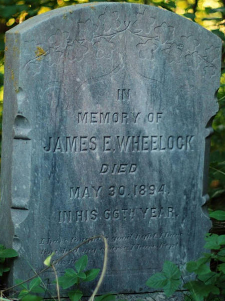 Parents Father: WHEELOCK, William Kerr Mother: RICKETSON, Charlotte Birth Born on August 17, 1828 in Granville, Annapolis Co., NS Death Died on May 30, 1894 in Granville, Annapolis Co., NS Buried in Eagleson Cemetery in Upper Granville, Annapolis Co., NS Marriages PHINNEY, Maria Married on October 17, 1871 in Granville, Annapolis Co., NS Sources Annapolis Cemetery Records: Upper Granville Eagleson Cemetery #19 Images James & Miriam Wheelock Birth James Wheelock