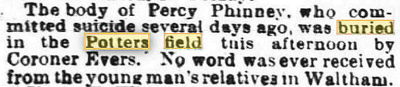 Parents Father: PHINNEY, Perry Mother: WHEELOCK, Miriam Elizabeth Birth Born on August 12, 1862 in Granville, Annapolis Co., NS Death Died on February 09, 1891 in Oakland, Alameda Co., CA Buried in County Cemetery in San Leandro, Alameda Co., CA Marriages PROCTOR, Jemima Rebecca Married on August 12, 1882 in Bolton, Worcester Co., MA Children PHINNEY, Amos Emery: July 30, 1883 - June 10, 1959 Notes Occupation: Farmer Death: Suicide Sources California Deaths: Oakland Pg. 312 #1403 Images Percy P. Phinney Marriage Percy Phinney Obit Oakland Tribune Oakland,CA Feb 18,1891