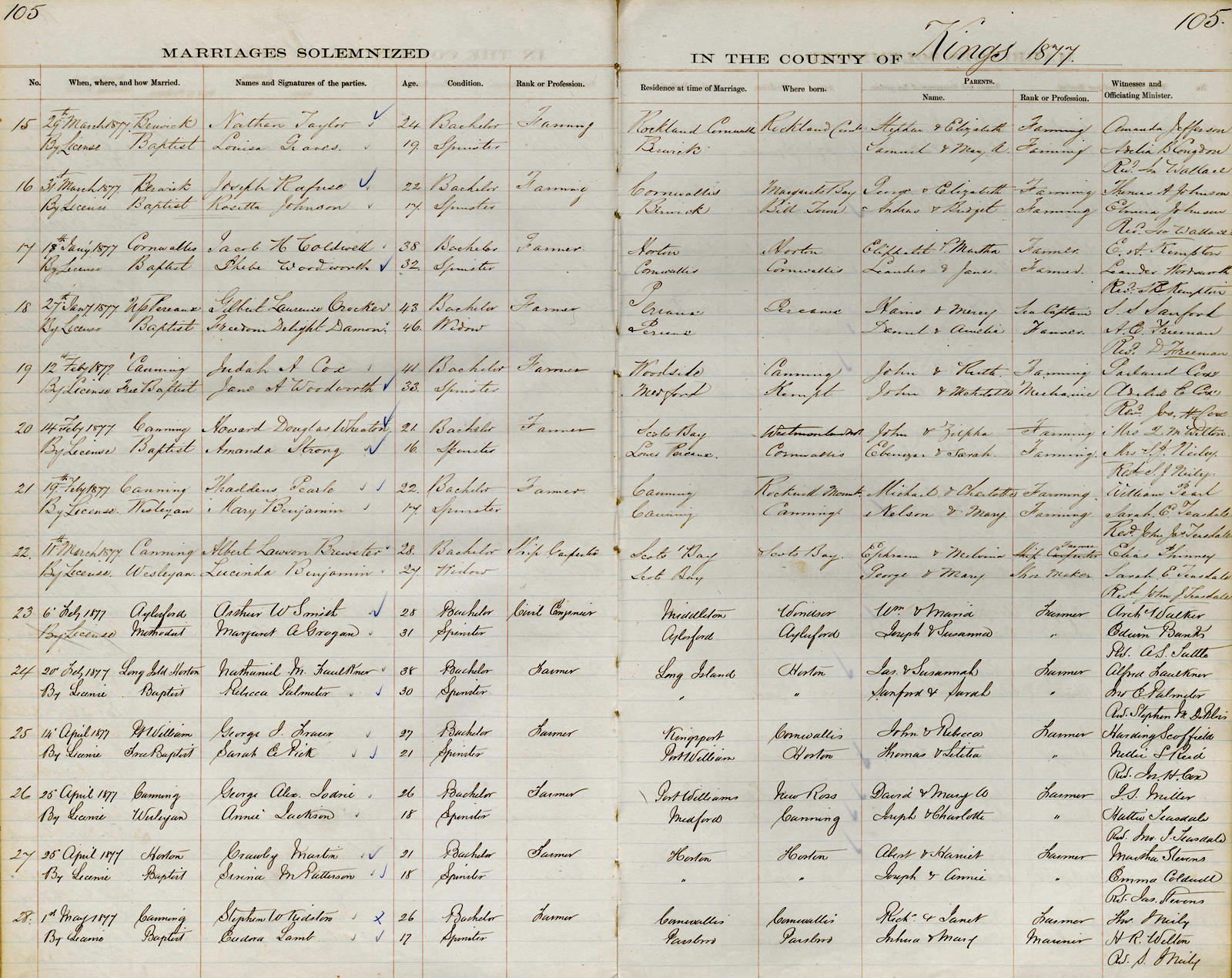 Birth Born on 1853 in Rockland, Kings Co., NS Death Died on November 24, 1893 in Berwick, Kings Co., NS Buried in Berwick Cemetery in Berwick, Kings Co., NS Marriages GRAVES, Louisa Married on March 29, 1877 in Berwick, Kings Co., NS Children TAYLOR, Lottie Love: April 24, 1884 - January 06, 1967 Notes Occupation: Farmer Sources Kings Cemetery Records: Berwick Cemetery Images Nathan Taylor Nathan Taylor Marriage