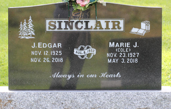 Parents Father: COLE, Dimock Torry Mother: McNEIL, Katherine Morris Birth Born on November 23, 1927 in Wallace Highlands, Cumberland Co., NS Death Died on May 03, 2018 in Port Hawkesbury, Inverness Co., NS Buried in Goshen Cemetery in Goshen, Guysborough Co., NS Marriages SINCLAIR, james Edgar Married on August 08, 1952 Children SINCLAIR, James SINCLAIR, Cheryl Notes Occupation: Teacher Obituary: SINCLAIR, Marie Jean Age 90, formerly of Goshen, Guysborough County passed away peacefully surrounded by her loving family on Thursday, May 3, 2018, in the Port Hawkesbury Nursing Home. Marie was a daughter of the late Dimock and Katie (MacNeill) Cole. She was born in Wallace Highlands, Cumberland Co., on November 23, 1927 and was raised in Richmond and Tatamagouche. Marie was a school teacher retiring after 35 years. She was very proud of her profession, and was an avid educator. She started her teaching career right after high school and then attended Normal College in Truro. In 1969, she graduated from St. Francis Xavier University with her Bachelor of Education and in 1973 with her Master of Education in Guidance. She retired in 1983. After retirement she enjoyed many years of working and managing Sinclair's Meat Market with her son Jimmie and husband Edgar. Marie was very involved in her community. She was clerk of session for King's United Church for many years and continued to be a honorary elder until her passing. She was a member of King's United Church Women's Organization. She was treasurer for Goshen Community Club and Centre for over 30 years, as well as volunteering in many other aspects in her community. Marie was also very much involved in the Prince Henry Sinclair Society. Marie's family was always her first love. She was well known for her appreciation of life and her continued contact with her former students. She enjoyed a good laugh, playing cards and visits with her many friends. Marie also loved to travel with her sisters and friends. She is survived by her husband of 65 years, Edgar; son, Jimmie(Judy), Goshen; daughter, Cheryl, Antigonish; six grandchildren, Jolene, Natasha, Courtney, Matthew, Evan, and Garrett; eight great-grandchildren, Jorja, Cole, Ava, Grayson, Jaelyn, Raya, Huxley, and Harlow; sisters-in-law, Edna Cole, Sandra Sinclair, and Marion(Allen) Lathem; many nieces and nephews. Marie was predeceased by sisters, Lula, Katherine, Florence, Cecelia, and Hazel; brothers, Lorne, Roy, and Morris. Cremation has taken place. Visitation will be held Sunday from 2-4 p.m. and 6-8 p.m. in King's United Church, Loch Katrine, from where funeral service will be held Monday at 2 p.m. with Rev. Meredith Marple officiating. Interment in Goshen Cemetery. Family flowers only please. Memorial donations may be made to Canadian Breast Cancer Foundation, Alzheimer Society of Nova Scotia or Goshen Cemetery Fund. Funeral arrangements are under the dignified and compassionate care of G.W. Giffin Funeral Home. On-line condolences may be made at www.gwgiffin.com. Sources Funeral Home: G.W. Giffin Funeral Home Country Harbour,NS Obituary May 2018 Images James & Marie (Cole) Sinclair Marie Cole