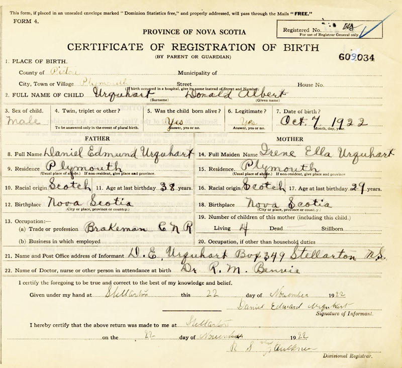 Birth Born on October 07, 1922 in Plymouth, Pictou Co., NS Marriages MACEWAN, Christina Married on August 11, 1945 in Truro, Colchester Co., NS Notes Occupation: Office Clerk Images Donald Urquhart Birth Christin e MacEwan Marriage