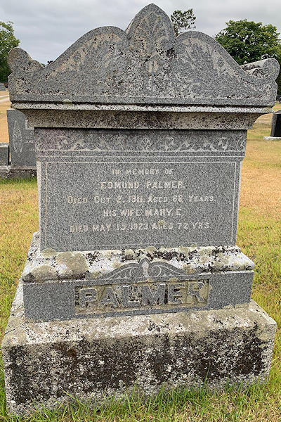 Parents Father: PALMER, Thomas Richard Mother: NICHOLS, Margaret Ann Birth Born on October 20, 1851 in Nicholsville, Kings Co., NS Death Died on May 14, 1923 in Aylesford, Kings Co., NS Buried in Berwick Cemetery in Berwick, Kings Co., NS Marriages PALMER, Edmund Chute Married on January 04, 1868 in Cornwallis, Kings Co., NS Children PALMER, James Arthur: August 08, 1869 - July 22, 1946 PALMER, Ella May: March 26, 1875 - December 30, 1935 PALMER, Fred Loren: 1878 - February 28, 1900 Notes Death: Valvular Disease of Heart Sources Berwick Register: May 23, 1923 Nova Scotia Deaths: Book 93 Pg. 562 Images Edmund & Mary (Palmer) Palmer Mary (Palmer) Palmer Death Mary Palmer Marriage