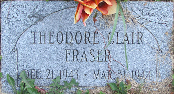 Parents Father: FRASER, Hartley Clair Mother: RUSS, Marie Ellen Birth Born on December 04, 1943 in Stockton Springs, Waldo Co., ME Death Died on March 31, 1944 in Stockton Springs, Waldo Co., ME Buried in Mount Prospect Cemetery in Stockton Springs, Waldo Co., ME Sources Maine Cemeteries: Mount Prospect Cemetery Stockton Springs,ME Images Theodore Fraser Walter & Ruth (Ross) McNutt Walter McNutt Obit