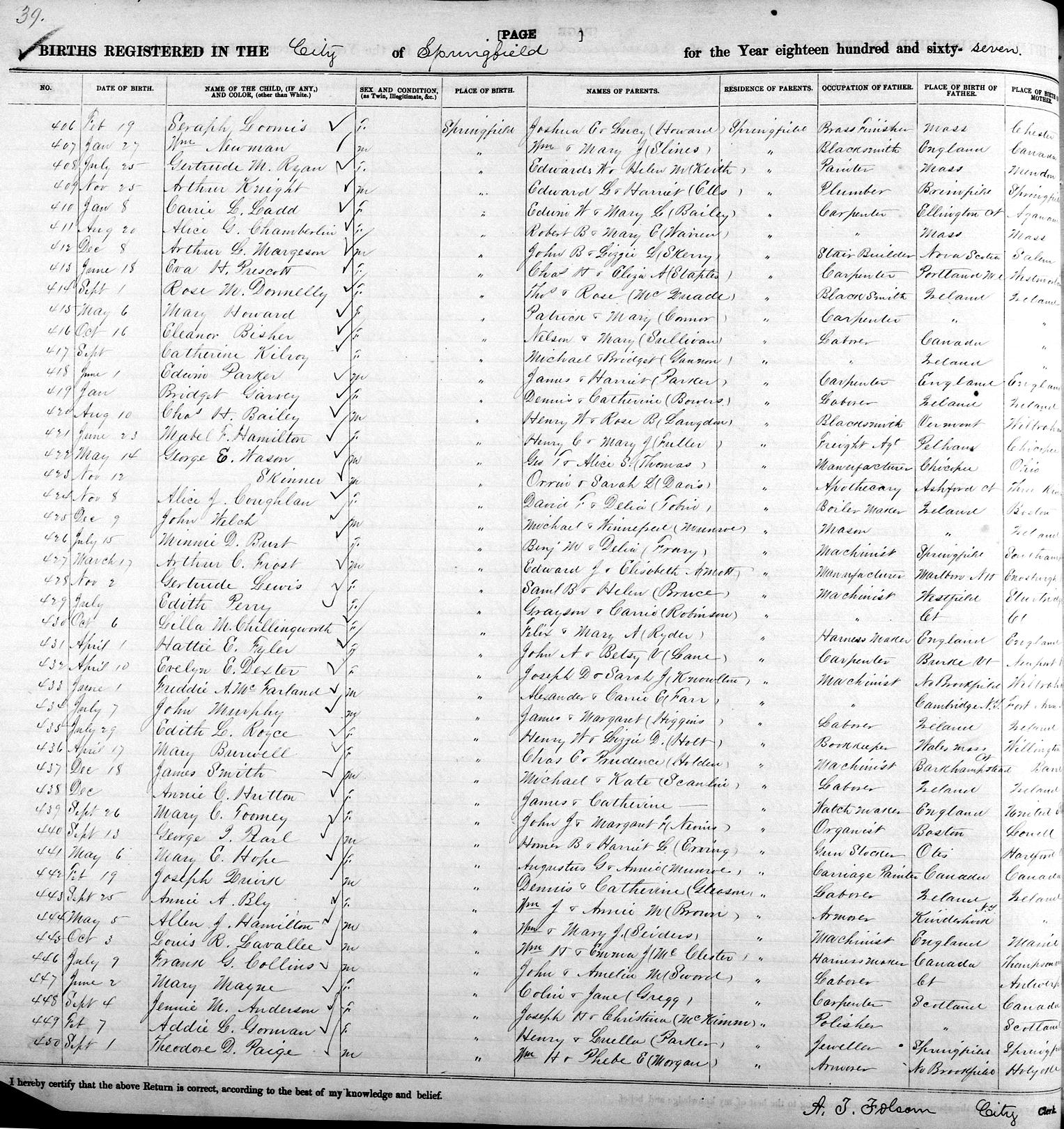 Parents Father: MARGESON, John Bishop Mother: SKERRY, Elizabeth M. Birth Born on December 08, 1867 in Springfield, Hampden Co., MA Images Arthur Margeson Birth