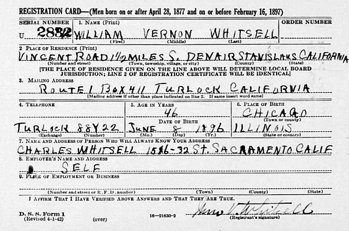 Birth Born on June 08, 1896 in Chicago, Cook Co., IL Death Died on February 04, 1997 in Santa Barbara, Santa Barbara Co., CA Marriages NEWCOMB, Ruth Helen Married on September 20, 1916 in Harvard, McHenry Co., IL Children WHITSELL, Elizabeth Louise: January 25, 1918 - October 19, 1993 WHITSELL, Robert H.: August 07, 1919 - March 29, 2008 WHITSELL, William Charles: February 15, 1922 - April 03, 1989 WHITSELL, Ruth Newcomb: January 31, 1931 Notes Occupation: Costruction Engineer Superintendant/ Contractor Images William Whitsell WW1 Draft William Whitsell WW2 Draft Ruth Newcomb Marriage