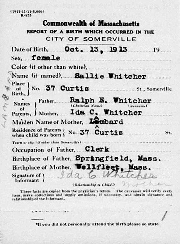 Birth Born on October 13, 1913 in Somerville, Middlesex Co., MA Death Died on August 13, 1997 in Portland, Cumberland Co., ME Buried in Riverside Cemetery in East Raymond, Cumberland Co., ME Marriages HARTWELL, Herbert Roger Married on 1936 Children HARTWELL, Roger Whitcher: June 04, 1940 HARTWELL, Allson: August 02, 1946 - August 14, 2011 Images Sally Whitcher Birth Herbert & Sally (Whitcher) Hartwell