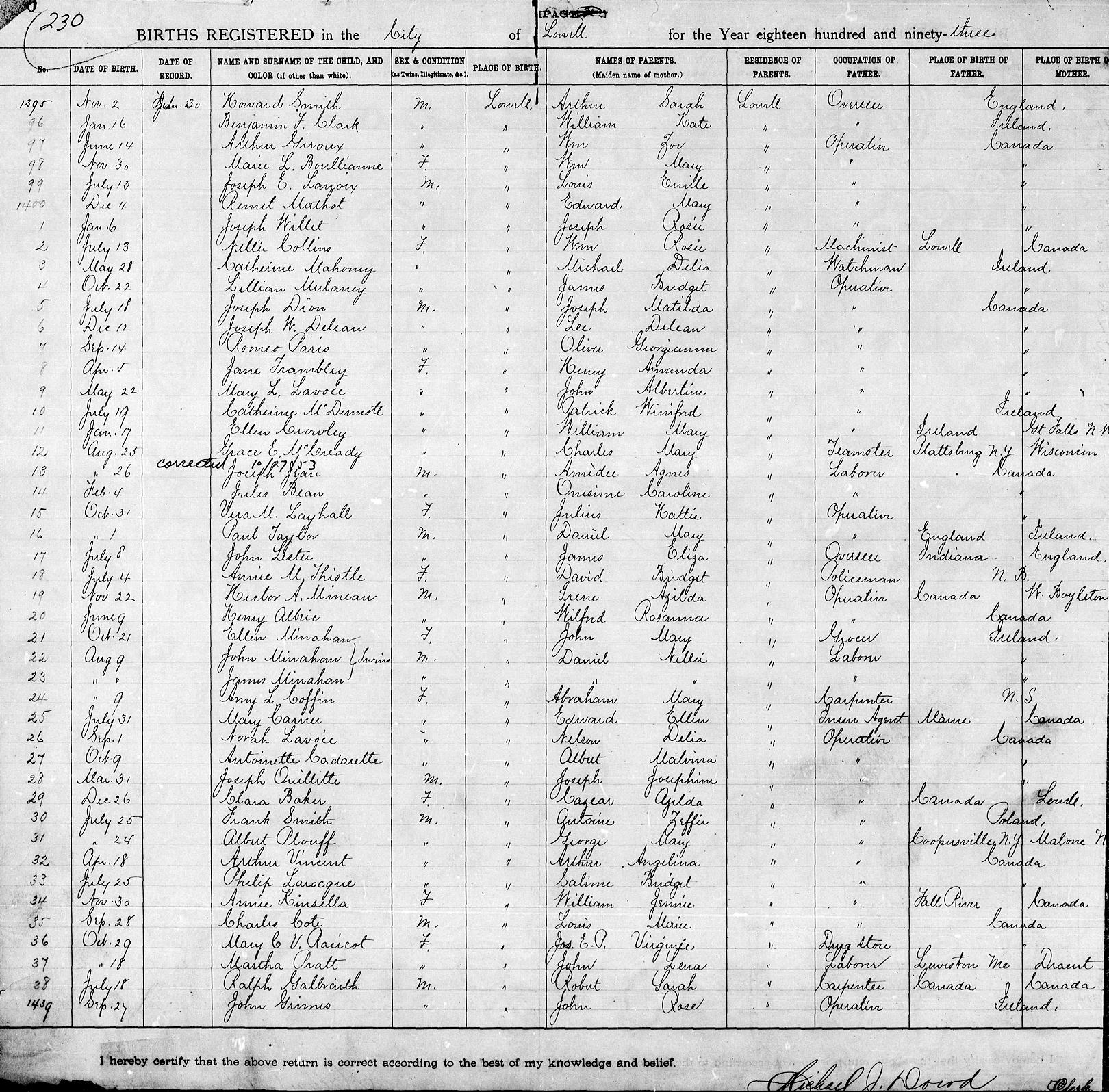 Parents Father: COFFIN, Abraham Owen Mother: NICHOLS, Mary Jane Birth Born on August 09, 1893 in Lowell, Middlesex Co., MA Death Died on January 31, 1895 in Lowell, Middlesex Co., MA Notes Death: Hydrocephalus Sources Massachusetts Deaths: Lowell Pg. 215 #118 Images Amy Coffin Birth Abraham & Mary J. (Nichols) Coffin & Percy,Amy,Lilla Coffin Amy Coffin Death