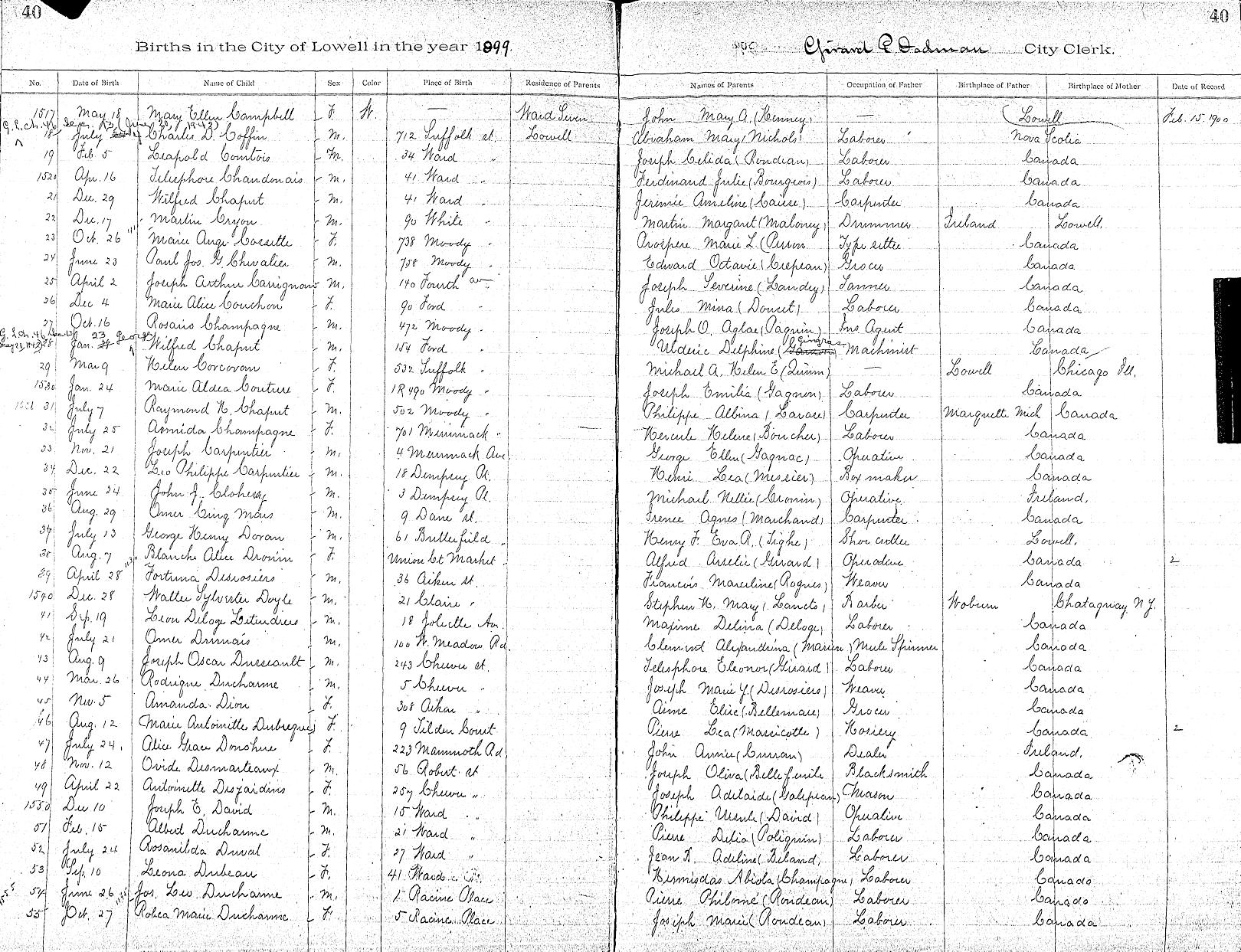 Parents Father: COFFIN, Abraham Owen Mother: NICHOLS, Mary Jane Birth Born on July 04, 1899 in Lowell, Middlesex Co., MA Death Died on December 22, 1952 in Manchester, Hillsborough Co., NH Buried in Edson Cemetery in Lowell, Middlesex Co., MA Marriages DANIELS, Myrtle Marion Married on September 17, 1924 in Lowell, Middlesex Co., MA Children COFFIN, Charles Donald: December 06, 1925 - December 12, 1925 COFFIN, Donald: 1928 Notes Military Service: WW1 Us Army Occupation: Electrical Engineer New England Telephone Co. Death: Coronary Insufficiency Sources New Hampshire Deaths: #52-5765 Images Charles Coffin Birth Charles D. & Myrtle (Daniels) & Charles D. Jr Coffin & Agnes (Watson) Coffin Charles D. Coffin Death Charles D. Coffin Marriage Charles D. Coffin Military Service
