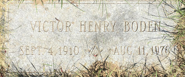 Parents Father: BODEN, Clarence Henry Mother: NICKERSON, Clara Hall Birth Born on September 04, 1910 in Cotuit, Barnstable Co., MA Death Died on August 11, 1976 in Barnstable Co., MA Buried in Mosswood Cemetery in Cotuit, Barnstable Co., MA Marriages BERRY, Marjorie Notes Occupation: Employee at Carbide & Carbon Chemical Corp. Sources Massachusetts Deaths: #038401 Images Victor Boden Victor Boden WW2 Draft