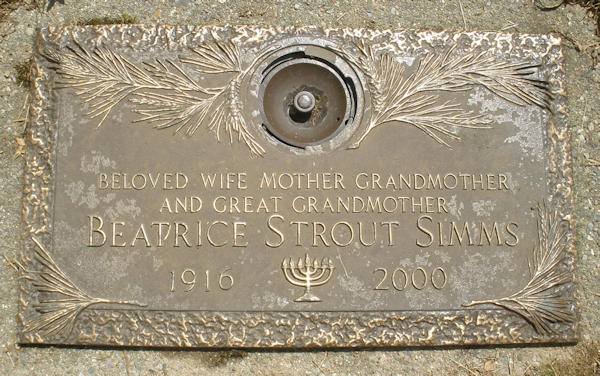 Birth Born on May 03, 1916 in Boston, Suffolk Co., MA Death Died on December 20, 2000 in Orderville, Kane Co., UT Buried in Sharon Memorial Park in Sharon, Norfolk Co., MA Marriages SIMMS, Lawrence Owen Married on 1973 in Massachusetts, USA Sources US Social Security Index: Numerical ID Files Images Beatrice Barker Birth Beatrice (Barker) Simms