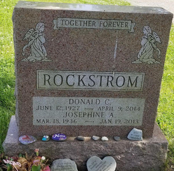 Birth Born on June 12, 1927 in Boston, Suffolk Co., MA Death Died on April 09, 2014 in West Ossipee, Carroll Co., NH Buried in Blue Hill Cemetery in Braintree, Norfolk Co., MA Marriages PELTON, Josephine Anne Married on 1979 in Massachusetts, USA Notes Obituary: ROCKSTROM Donald C., 86, of West Ossipee, N.H. formerly of Beacon Hill, Boston for many years. Beloved Husband of the late Josephine Anne (Pelton) Rockstrom for 33 years. Loving Father of and cherished Step Dad. Beloved Grandfather of 14 Grandchildren and 10 Great Grandchildren with an 11th expected in September. Devoted Brother of the late Howard. He was a Retired Division Head of the Electronic Engineering Dept. of Boston Edison for 54 years and also leaves his extended Boston Edison Family. He was retired from the U.S. Navy and held a private pilot's license and often flew with his friends in Windsock Village in W. Ossipee, N.H. Occupation: Division Head Electronic Engineering Dept. Boston Edison Military Service: US Navy Sources Findagrave.com: https://www.findagrave.com/memorial/240015784/donald_c-rockstrom Images Donald & Josephine (Pelton) Rockstrom.