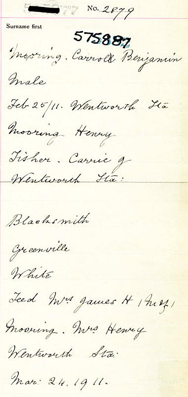 Parents Father: MOORING, William Henry Mother: FISHER, Caroline Emma Jane Birth Born on February 25, 1911 in Wentworth Station, Cumberland Co., NS Death Died on October 23, 1958 in Springhill, Cumberland Co., NS Buried in Springhill, Cumberland Co., NS Marriages LANGILLE, Grace Pearl Married on October 07, 1933 in Springhill, Cumberland Co., NS Children MOORING, Janice MOORING, Marjorie Juanita: November 17, 1933 - April 02, 2011 MOORING, Carl Sinclair: October 31, 1939 - February 23, 1941 MOORING, Carolyn Jean: 1948 - September 04, 2022 MOORING, Wanda Lee: 1952 - July 20, 2007 Notes Occupation: Lumberman/ Mechanic - Coal Mine Death: Multiple Severe Contusions and Crushing as result of 1958 Springhill Mine "Bump" Sources Nova Scotia Deaths: Year 1958 Pg. 6018 Images Carl Mooring Birth Carl Mooring Death Carl Mooring Marriage Carl Mooring