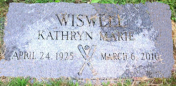 Birth Born on April 24, 1925 in Greenwood, Kings Co., NS Death Died on March 06, 2010 in Halifax, Halifax Regional Municipality, NS Buried in Fairview Cemetery in Halifax, Halifax Regional Municipality, NS Marriages WISWELL, William Arthur Married on June 03, 1950 in Greenwood, Kings Co., NS Children WISWELL, Margaret Susan: April 25, 1951 WISWELL, Kathryn Anne: October 27, 1952 WISWELL, Martha Elizabeth: May 10, 1956 WISWELL, Elizabeth Jane: August 02, 1961 Sources Billiongraves: http://billiongraves.com/pages/record/person/12035246#given_names=Kathryn&family_names=WISWELL Images Kathryn (Small) Wiswell