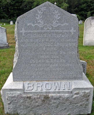 Birth Born on January 09, 1836 in New Hampshire, USA Death Died on July 13, 1874 in Coos Co., NH Buried in Straw Cemetery in Carroll, Coos Co., NH Marriages McLUCAS, Almira Children BROWN, Mark L.: August 13, 1859 - July 12, 1927 Notes Military Service: US Civil War US Army Sources New Hampshire Cemeteries: Straw Cemetery Carroll,NH Images Thomas M. & Almira (McLucas) Brown Thomas M. Brown