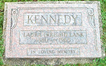 Parents Father: WRIGHT, William Mother: STARRETT, Amanda Birth Born on April 22, 1880 in Green Oaks, Colchester Co., NS Death Died on January 09, 1965 in Salmon River, Colchester Co., NS Buried in Fisher Creek Cemetery in Green Oaks, Colchester Co., NS Marriages KENNEDY, Sidney Herbert Married on October 30, 1912 in Truro, Colchester Co., NS Children KENNEDY, Blanchard Elwood: April 24, 1913 - March 29, 1989 KENNEDY, Annie Isabel: May 02, 1917 - 1978 KENNEDY, Bernard Orville: May 28, 1920 - 1982 Notes Death: Cerebrovascular Accident Sources Nova Scotia Deaths: Year 1965 #1356 Images Laura (Lank) Kennedy Laura (Lank) Kennedy Death