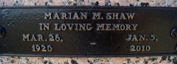 Birth Born on March 26, 1920 in Los Angeles, Los Angeles Co., CA Death Died on January 05, 2010 in Rockport, Aransas Co., TX Buried in Aransas Memorial Park in Rockport, Aransas Co., TX Marriages SHAW, Glenn Herbert Married on 1979 in Orange Co., CA Sources Cemetery: Aransas Memorial Park Rockport, TX Images Marian (Mathis) Bates Birth Marian (Bates) Shaw