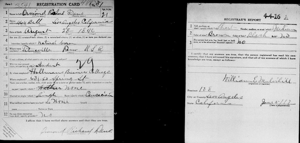 Birth Born on August 28, 1895 in Titusville, Crawford Co., PA Death Died on November 04, 1924 in San Bernardino Co., CA Buried in Mountain View Cemetery in San Bernardino, San Bernardino Co., CA Marriages SHAW, Vernal Emily Married on 1922 in San Bernardino, San Bernardino Co., CA Images Ormond Dano Ormond Dano WW1 Draft