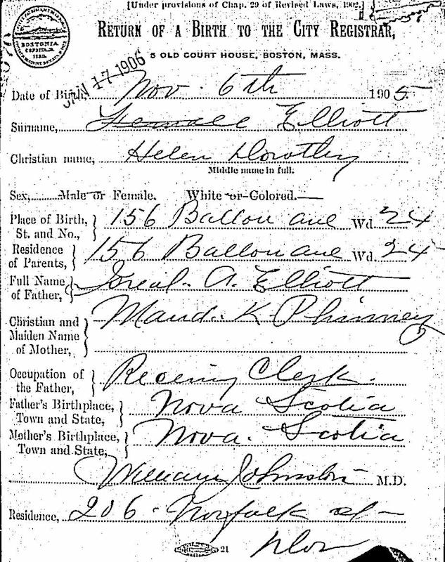 Parents Father: ELLIOTT, Israel Avery Mother: PHINNEY, Maud Kathleen Birth Born on November 06, 1905 in Boston, Suffolk Co., MA Death Died on April 09, 1971 in Columbus, Franklin Co., OH Buried in Green Lawn Cemetery in Columbus, Franklin Co., OH Marriages BELL, Henry A. W. Married on October 07, 1937 in Monroe, Monroe Co., MI Children BELL, Hope Ann: May 04, 1938 - April 05, 2013 BELL, Henry A. W.: November 25, 1940 - May 29, 2010 Notes Occupation: Ofice Clerk - Manager Coal Dealer Sources Ohio Deaths: #034394 Images Helen Elliott Birth