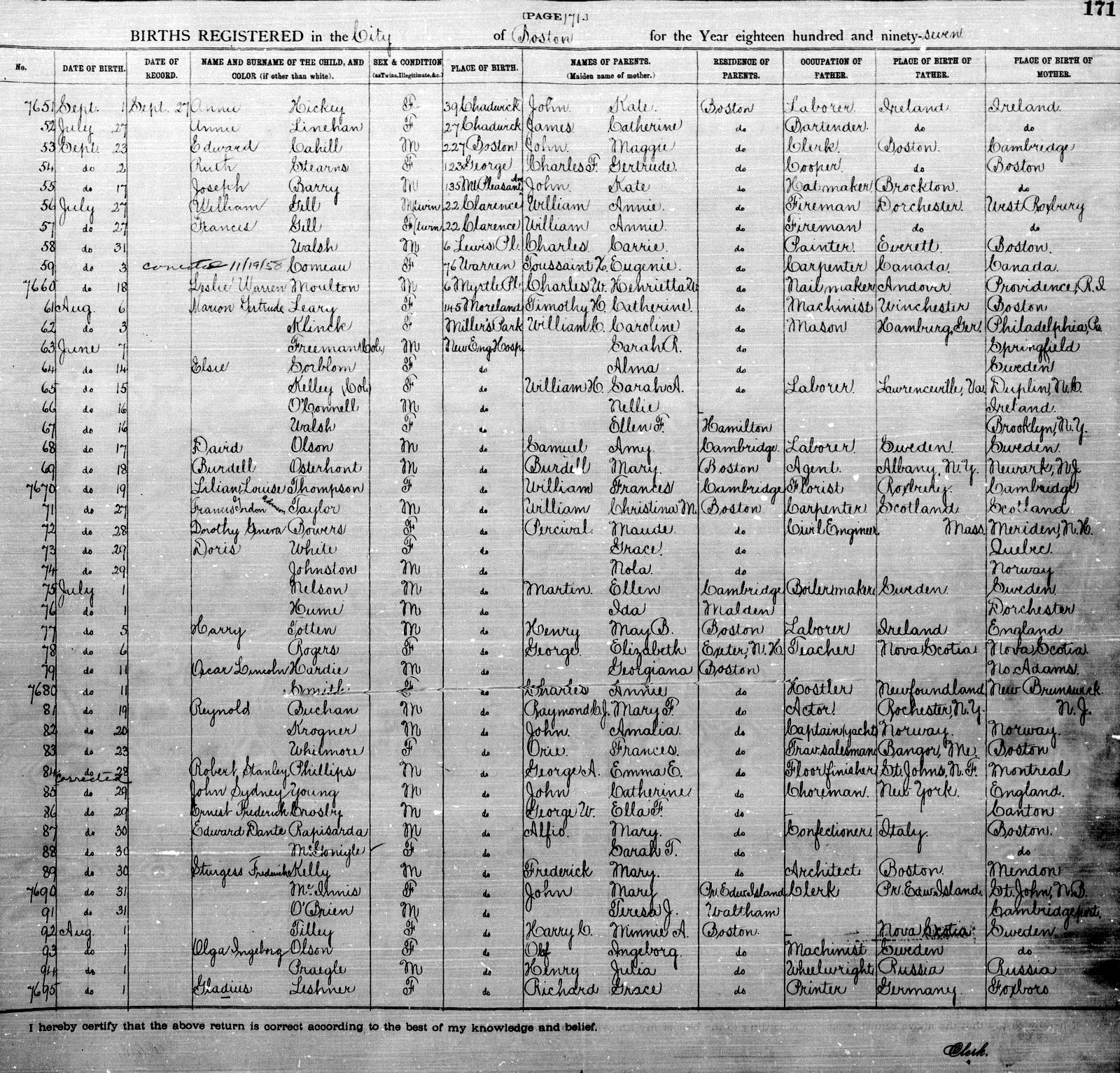Parents Father: TILLEY, Harry Clifford Mother: LIND, Minnie A. Birth Born on August 01, 1897 in Boston, Suffolk Co., MA Images Girl Tilley Birth