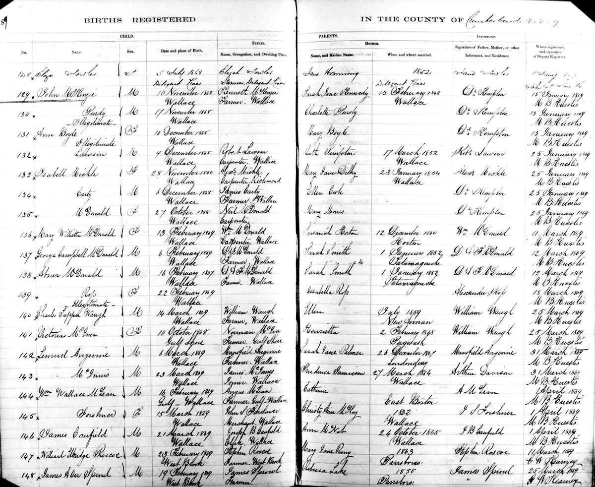 Parents Father: ANGEVINE, Mansfield Mother: PALMER, Sarah Jane Birth Born on March 06, 1869 in Wallace, Cumberland Co., NS Death Died on May 10, 1941 in Wilmot, Annapolis Co., NS Buried in East Gore Cemetery in East Gore, Hants Co., NS Marriages LIVELY, Rachel Ann Married on October 30, 1891 in Brockton, Plymouth Co., MA Children ANGEVINE, Frank Lemuel: September 01, 1893 - May 25, 1976 ANGEVINE, Fannie May: September 01, 1897 - March 02, 1984 ANGEVINE, Viola Louise: September 23, 1903 - 1996 ANGEVINE, Walter Earl: February 10, 1908 - October 26, 1971 ANGEVINE, James Edgar: February 10, 1908 - February 12, 1908 ANGEVINE, Clarence Charles: July 24, 1910 - March 13, 1972 ANGEVINE, Frederick Alfred: September 11, 1912 - September 16, 1912 ANGEVINE, Ethel Geneva: February 12, 1914 - May 04, 1943 Notes Occupation: Painter/ Farmer Death: Coronary Thrombosis Sources Nova Scotia Deaths: Book 176 Pg. 744 Images Lemuel Angevine Birth Lemuel C. Angevine Birth Lemuel & Rachel (Lively) & James E. & Frederick A. Angevine Lemuel Angevine Death