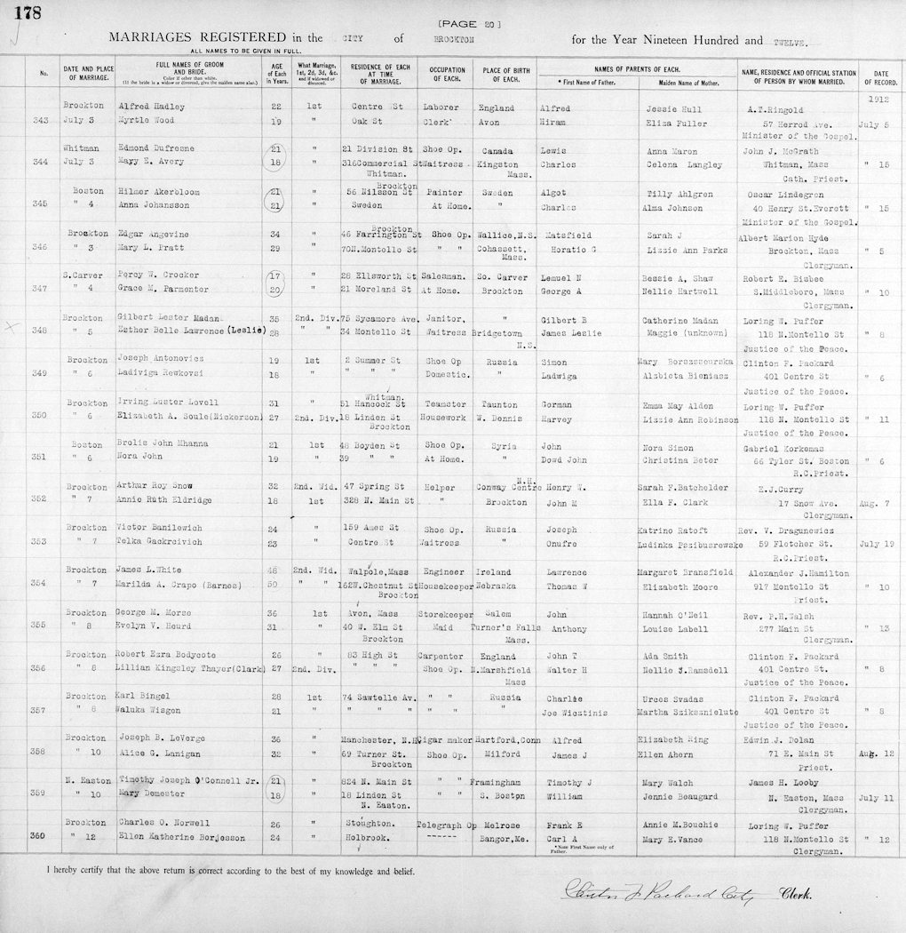 Parents Father: ANGEVINE, Mansfield Mother: PALMER, Sarah Jane Birth Born on January 28, 1878 in Wallace, Cumberland Co., NS Death Died on October 27, 1939 in Brockton, Plymouth Co., MA Buried in Melrose Cemetery in Brockton, Plymouth Co., MA Marriages PRATT, Mary Lizzie Married on July 03, 1912 in Brockton, Plymouth Co., MA Notes Military Service: Spanish - American War US Army Sources US Veterans Admin Index: #2326584 Images Edgar & Mary (Pratt) Angevine Edgar A. Angevine Marriage Edgar A. Angevine Military Service Record Edgar A. Angevine Naturalization